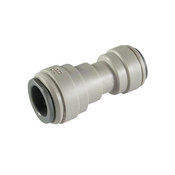 The John Guest Reducing Straight Connector with 1/2" x 3/8" push-fit connections is suitable for potable domestic and commercial water applications including softening, conditioning, filtering, reverse osmosis, cleaning, sanitising, and more.